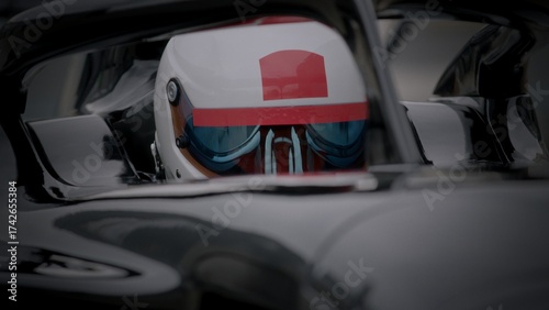 Fototapeta premium A fast racing car stands on the starting grid before the race