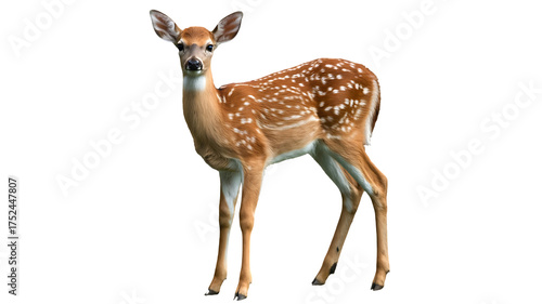 © Shahbaz, Naklejka premium A fawn standing gracefully, isolated on transparent background this charming image captures the innocence and beauty of wildlife, perfect for naturethemed projects