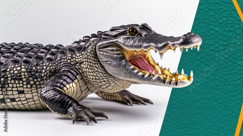 © ปฏิภาน ผดุงรัตน์, Fototapeta premium A fearsome alligator with its jaws wide open, displaying sharp teeth