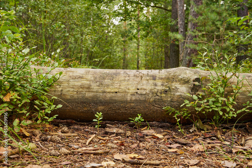 Fototapeta premium a felled tree on a forest road, trunk, forest,path,forest path