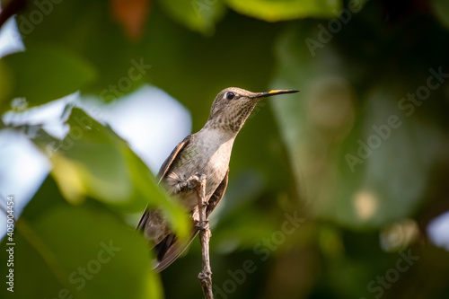 Obraz premium A Female Hummingbird resting ina a backyard tree