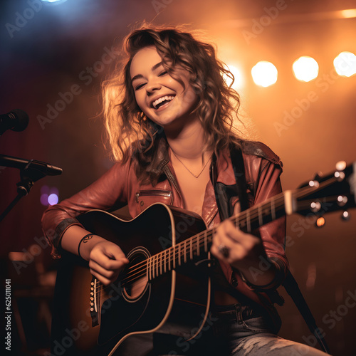 Obraz premium a female singer playing guitar