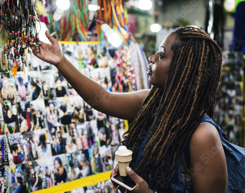 © Rawpixel.com, Obraz premium A female tourist choosing dreadlock extension