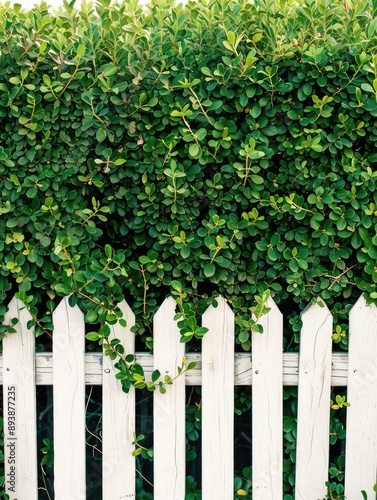 Fototapeta premium A fence covered with ivy, indicating a need for maintenance or landscaping...