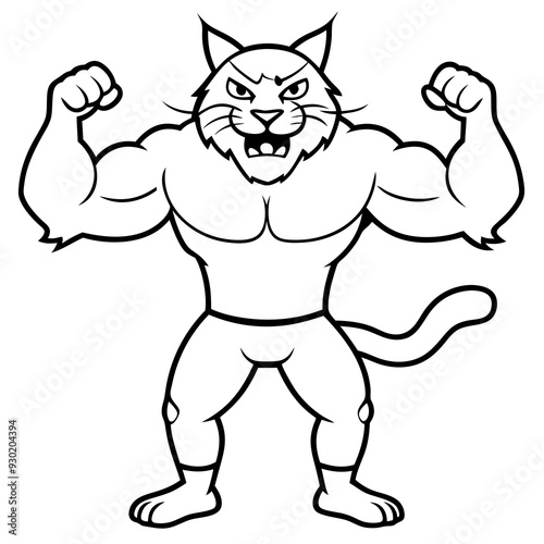 © design master, Fototapeta premium A ferocious cat athlete posing line art vector illustration