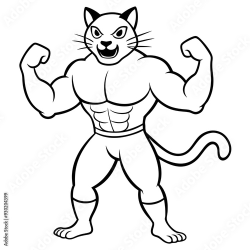 Fototapeta premium A ferocious cat athlete posing line art vector illustration