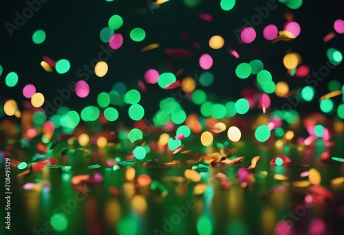 Naklejka premium A festive and colorful party with flying neon confetti in green and pink and gold tones