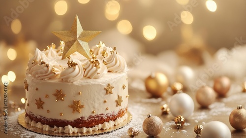 Fototapeta premium A festive cake adorned with a golden star and decorations, set against a...