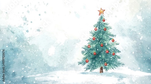 Obraz premium A festive Christmas tree in winter setting.