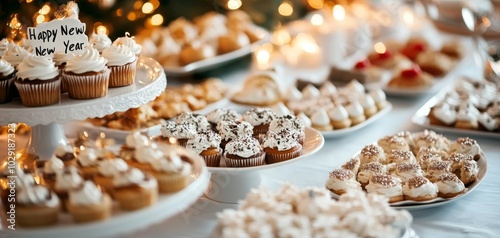Naklejka premium A festive display of assorted cupcakes and pastries, beautifully arranged for...
