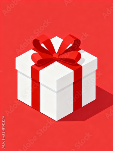 © komgritch, Obraz premium A festive gift box with a red ribbon sits on a bright red background, symbolizing celebration and surprise.
