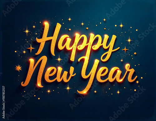 © Pisit, Fototapeta premium A festive "Happy New Year" sign with golden letters and stars.
