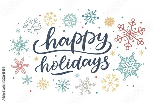 Fototapeta premium A festive winter design featuring a hand-lettered happy holidays message encircled by decorative snowflakes and flowers
