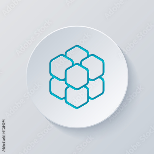 © fokas.pokas, Obraz premium A few cubes, box in 3D, simple icon. Cut circle with gray and blue layers. Paper style