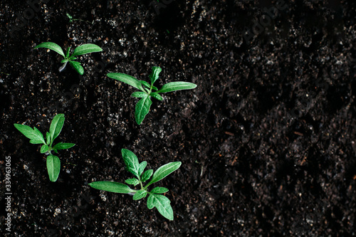 © Елена Лавринович, Naklejka premium a few fresh young shoots of plants against the ground