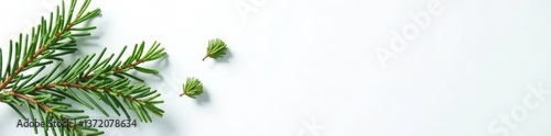© box, Fototapeta premium A few isolated spruce tips and branches on white surface, foliage, spruce