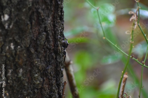 Obraz premium A fiddler crab hides on the bark of a tree at a southern plantation.