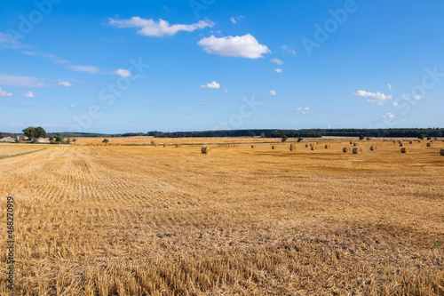 © bzyxx, Obraz premium A field for a large bale. Early fall.