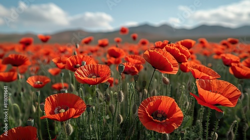 © Sang, Obraz premium A field of bright red poppies in full bloom.