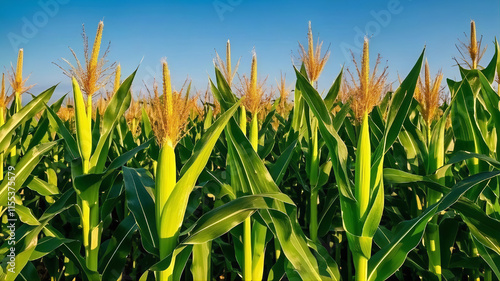 © Miss Lora, Fototapeta premium A field of corn with blue sky