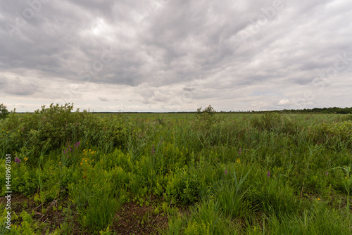 © Ryszard, Obraz premium A field of grass with a cloudy sky in the background