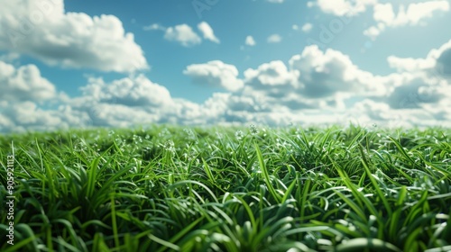 © G.Go, Obraz premium A field of grass with a cloudy sky in the background