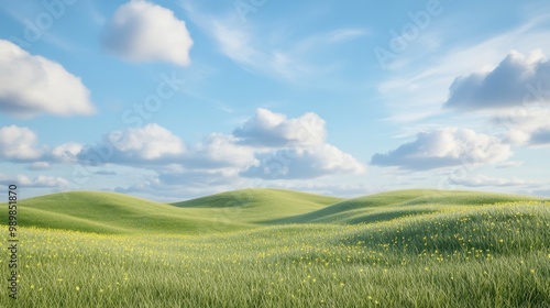 © Hatoru, Fototapeta premium A field of grass with a few clouds in the sky