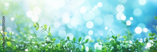 Fototapeta premium A field of green grass with a blue sky in the background. The grass is lush and vibrant, and the sky is clear and bright. Concept of peace and tranquility, as if one were walking through a serene