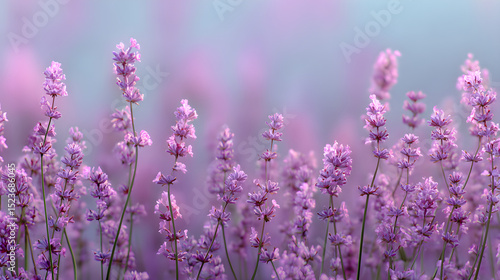 Naklejka premium A field of lavender flowers in bloom with a soft focus background of purple and light blue colors