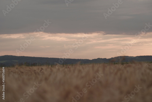 Fototapeta premium a field of mature wheat plants, with their golden-brown ears and long,...