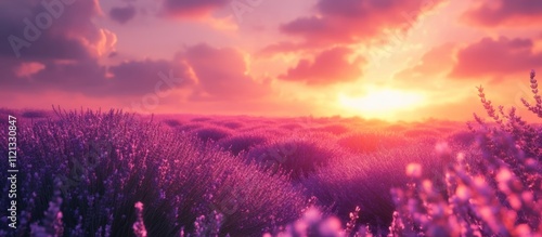 Fototapeta premium A field of purple lavender flowers bathed in the warm glow of a setting sun,...