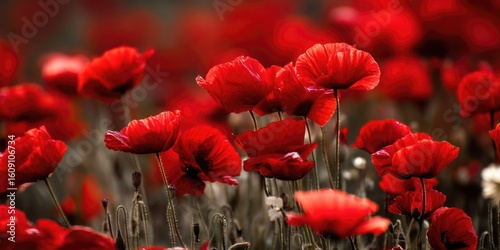 © Chenda, Obraz premium A field of red poppies swaying in the summer breeze