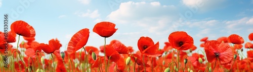 © Friedbert, Naklejka premium A field of red poppies under a blue sky