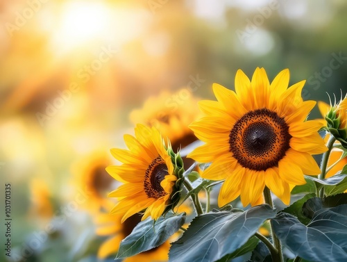 Fototapeta premium A field of sunflowers basking in warm sunlight, symbolizing joy, positivity,...