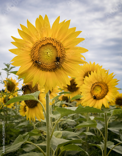 Fototapeta premium A field of sunflowers erupts in bright yellow in Elverson, PA