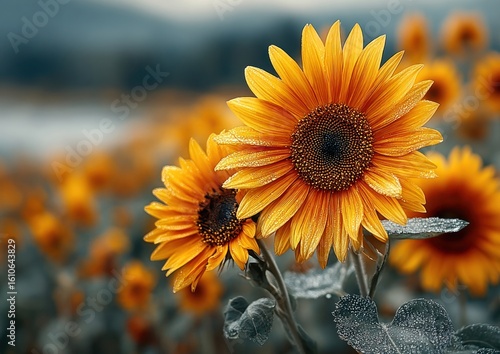 © Bilal, Fototapeta premium A field of sunflowers swaying in the breeze, representing positivity and strength