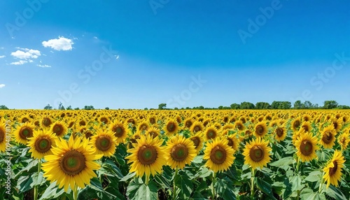 © Deamard, Obraz premium A field of sunflowers under a vivid blue sky.