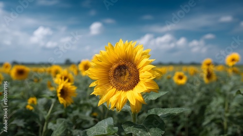 © Thares2020, Fototapeta premium A field of vibrant sunflowers in full bloom under a clear blue sky
