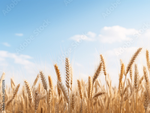 © Elena, Fototapeta premium a field of wheat with blue sky and clouds