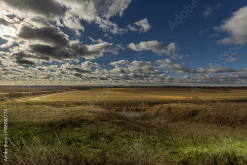 © Sergei, Fototapeta premium A field with a few clouds in the sky