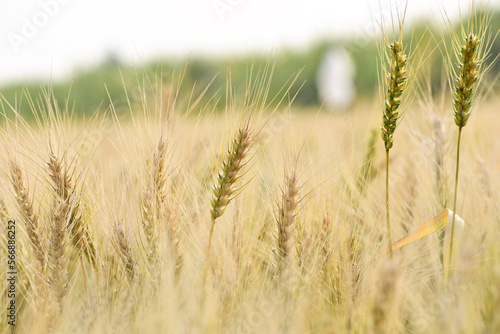 © Kiran, Fototapeta premium A field with golden ears of wheat on a hot summer day