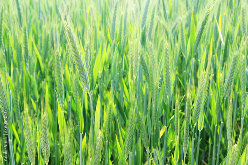Obraz premium A field with green ears in Baden-Wuerttemberg, Germany