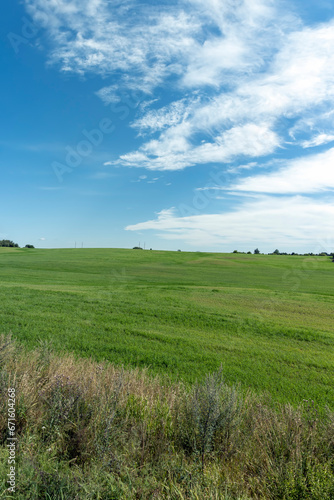 © rsooll, Naklejka premium a field with green grass in the summer season