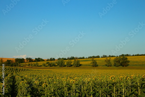 © parpalac, Fototapeta premium A field with trees and a rainbow