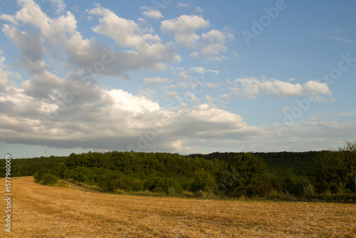 © parpalac, Fototapeta premium A field with trees and blue sky