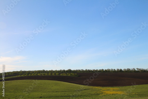 © parpalac, Fototapeta premium A field with trees and blue sky