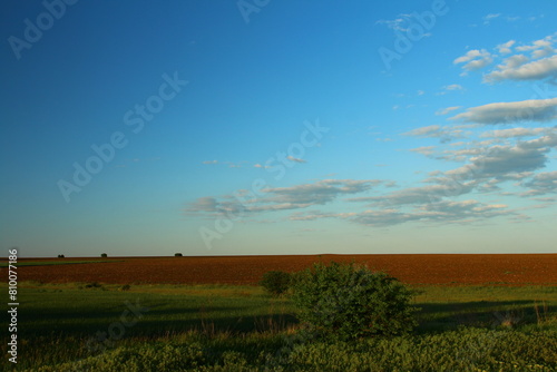 © parpalac, Obraz premium A field with trees and blue sky
