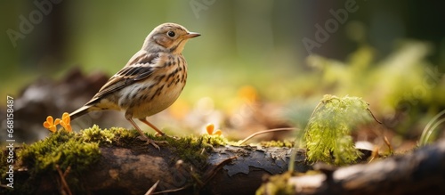 © The 2R Artificiality, Fototapeta premium A fieldfare chick waits for food from its parents in a spring forest