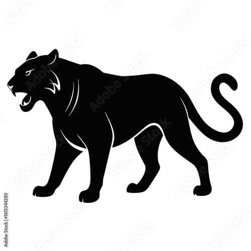 © MD ARIFUL, Obraz premium A fierce black panther silhouette with mouth open and sharp teeth bared in a powerful stance