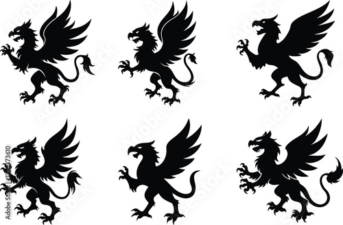 © Rani, Obraz premium A fierce black silhouette of a griffin